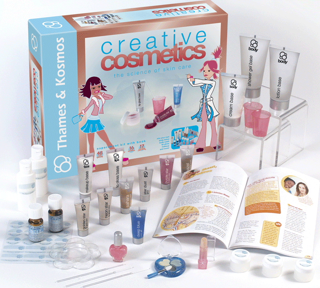 Experience the beautiful side of biology and chemistry with this unique collection of experiments. Learn how to care for your skin, hair and nails so they are healthy and radiant. Start by building a foundation in basic dermatology, and then learn about the chemistry of oils, gels and lotions. Mix your own personalized beauty formulas from the cosmetic bases in the kit.